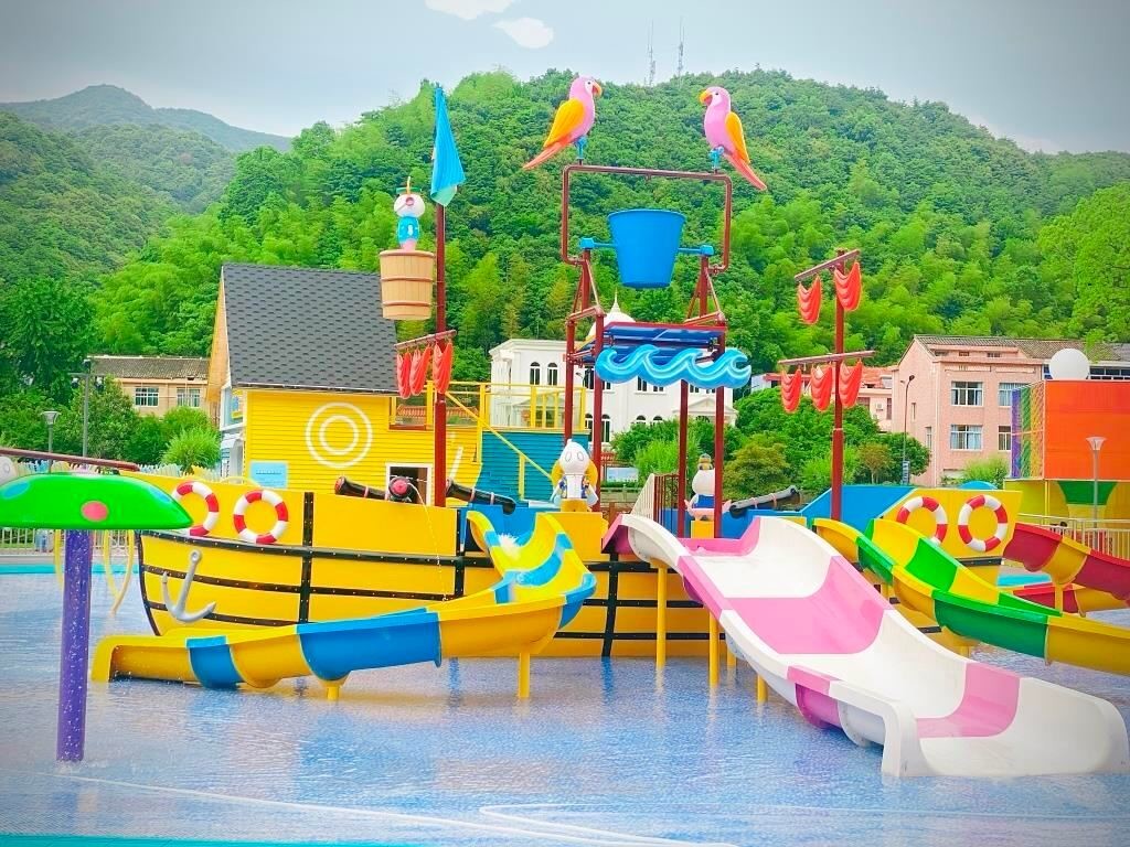 Features: Water slide, boat, climbing wall