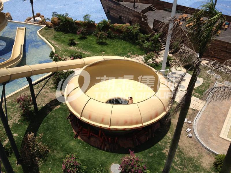 Bei der Bowl-Ride fahren die Fahrer durch einen steilen Serpentin-Eingang und schießen dann in die weit geöffnete Schüssel hoch an der Wand.Zwei Fahrer reisen auf einer doppelblättrigen Röhre, während sie einen steilen Einlauf hinunterrutschen.Dann schießen sie in die weit geöffnete Schüssel, hoch an der Wand für Spitzenriller, an die Wand geklebt durch Zentrifugalkraft und vorwärts geschossen durch Impuls, schnellen sie um den Umfang,Die Form der Schüssel ist so konstruiert, dass sie eine glatte Form erzeugt.Wenn Flöße oder Fahrer langsamer werden, bewegen sie sich in die Mitte für einen schnellen und aufregenden Ausgang.